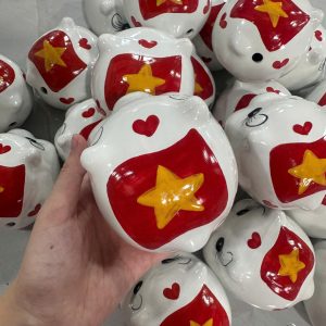 SẢN PHẨM: Lợn đất heo đất ống heo tiết kiệm decor gốm sứ cờ đỏ sao vàng – Heo yêu nước – Bát Tràng