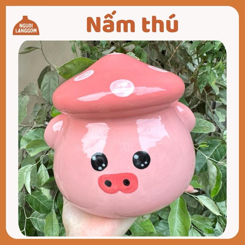 SẢN PHẨM: [lỗ tròn] Lợn đất heo đất ống heo tiết kiệm decor – Nấm Thú – Bát Tràng